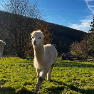 Wir haben die Route bewusst kurz gehalten, da Alpakas zwar wunderbare Begleiter sind, jedoch als Fluchttiere immer ein gewisses Maß an Stress empfinden. Um ihnen nach der Wanderung eine wohlverdiente Pause zu gönnen, endet unser Ausflug mit einem gemütlichen Snack auf der Weide, bei dem ihr die Tiere noch einmal ganz in Ruhe erleben könnt.